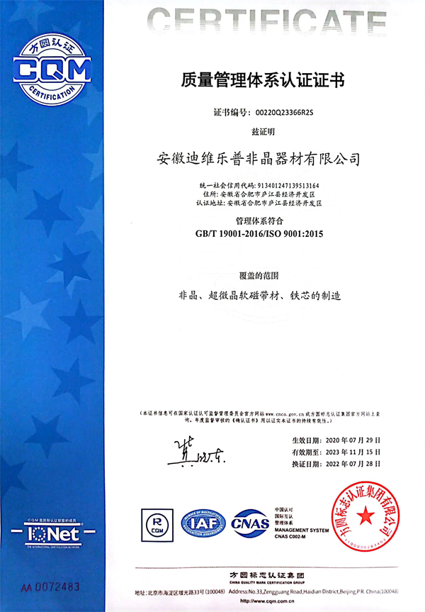 為響應國家標準化發展綱要,推動高質量發展,建設社會主義現代化國家。 安徽迪維樂普非晶器材有限公司、非晶合金電力互感器材料研究中心;為促進標 準化發展、提升標準化水平;實現企業有序發展、有規可循;產品質量有據可依、 方便客戶甄別選用,特制定本企業質量標準。